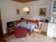Wohnraum mit Südbalkon, Doppelbettcouch, Eßecke, Küchenblock, TV,